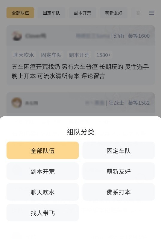 4、加入队伍,除了可以自己创建队伍外,冒险家们还可以加入其他冒险家的队伍,可以在创建队伍的下方选择自己想加入的标签进行检索,选择合适自己目标的队伍加入。