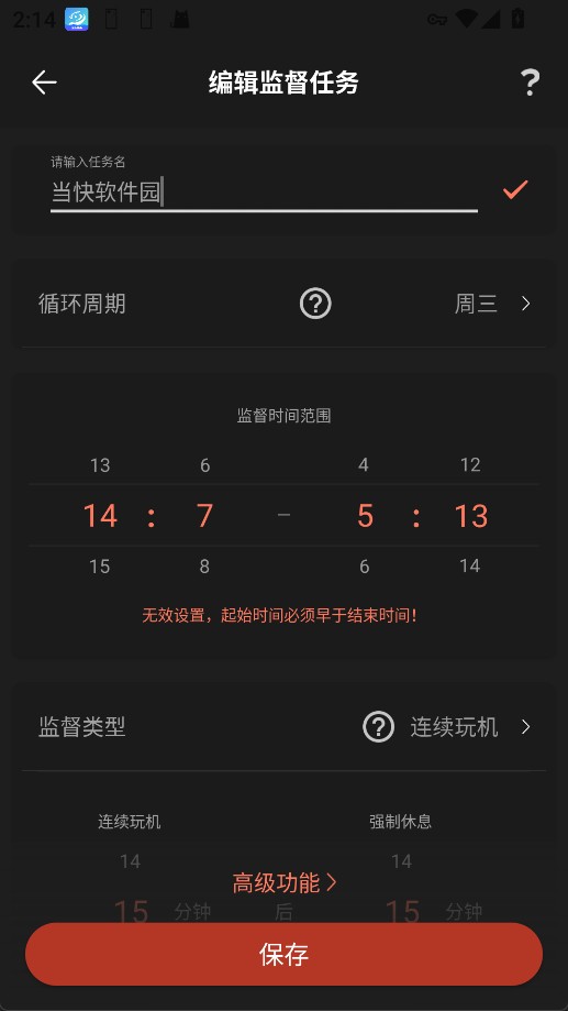 1、「监督连续玩机时间」玩机一段时间后,强制休息一段时间,劳逸结合。
