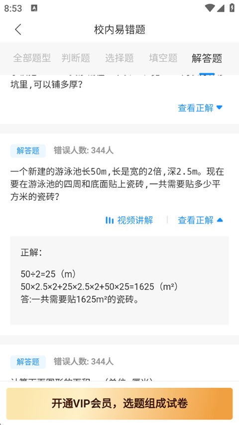 3、在校内易错题页面中涵盖了各种学习易错题类型,并且题目都有详细的答案解析。
