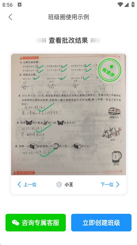 8、自动批改作业,查看批改结果,高效便捷又智能,快来下载体验吧。
