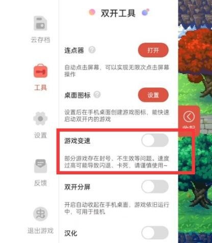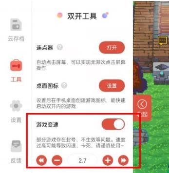 2、接下来,找到游戏变速,打开该功能,如下图所示。